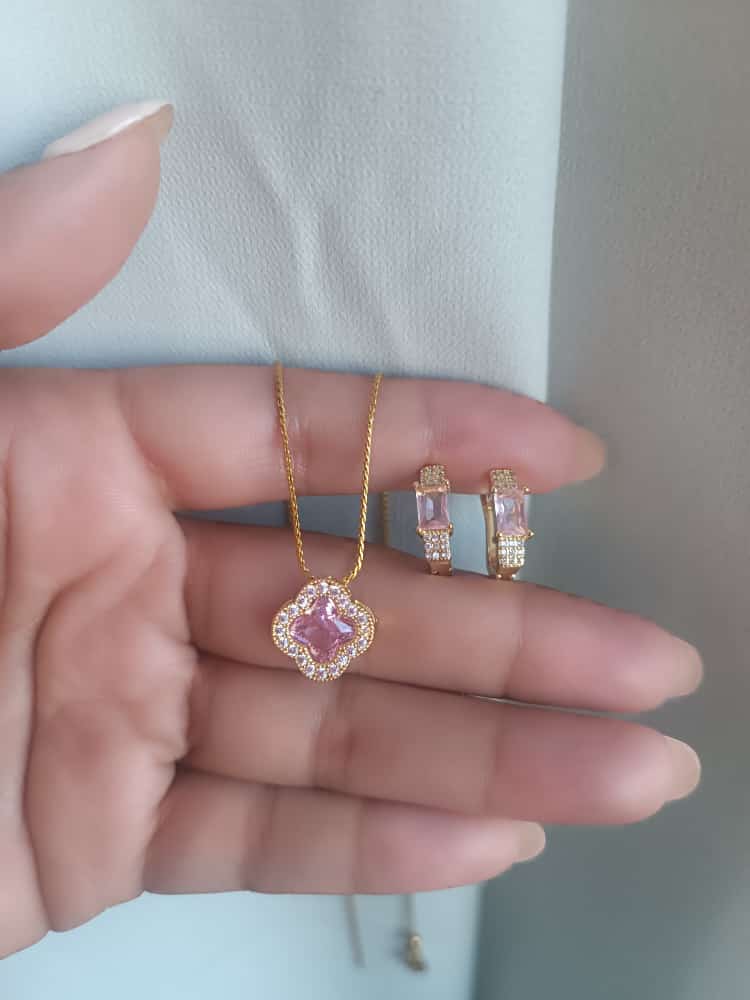 Set de Argollas y Cadena Laminada en oro 18k y dije Punto de luz