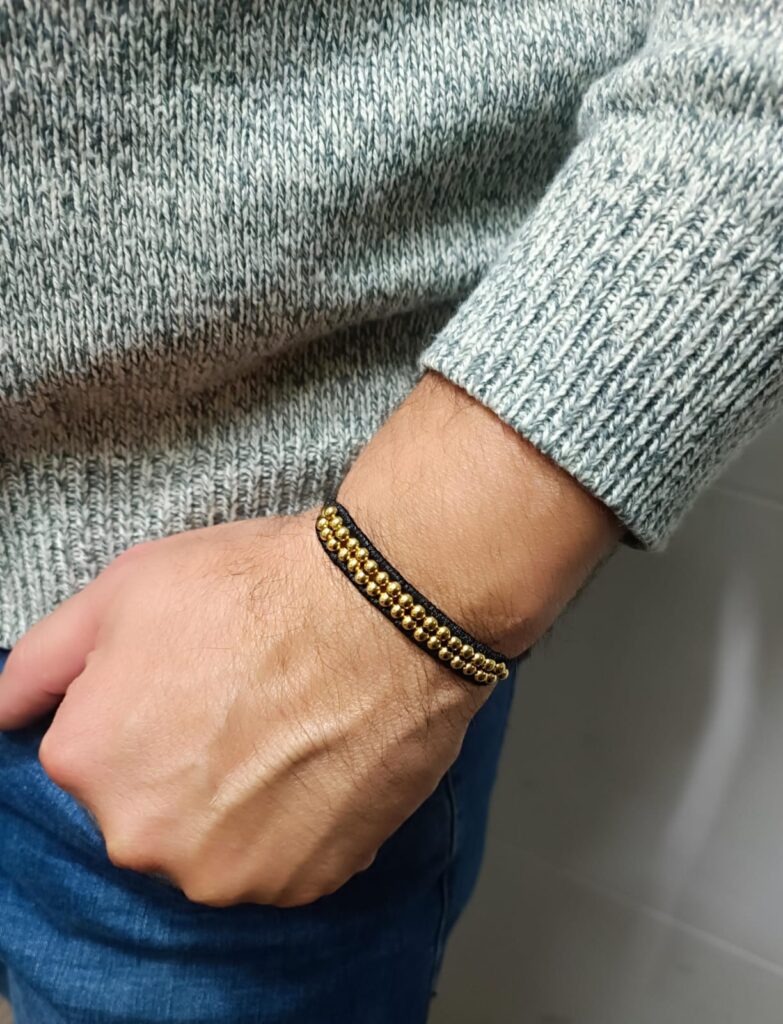 Pulseras Tejidas Con Hilo Y Balines De 5mm Laminados En Oro