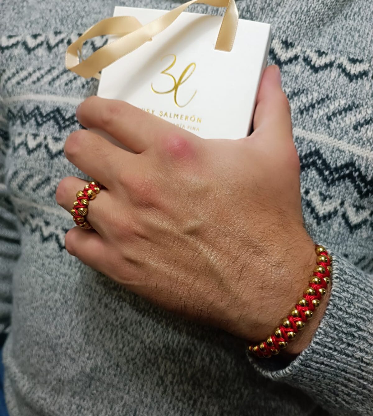 Pulseras tejidas con hilo y balines de 5mm laminados en oro