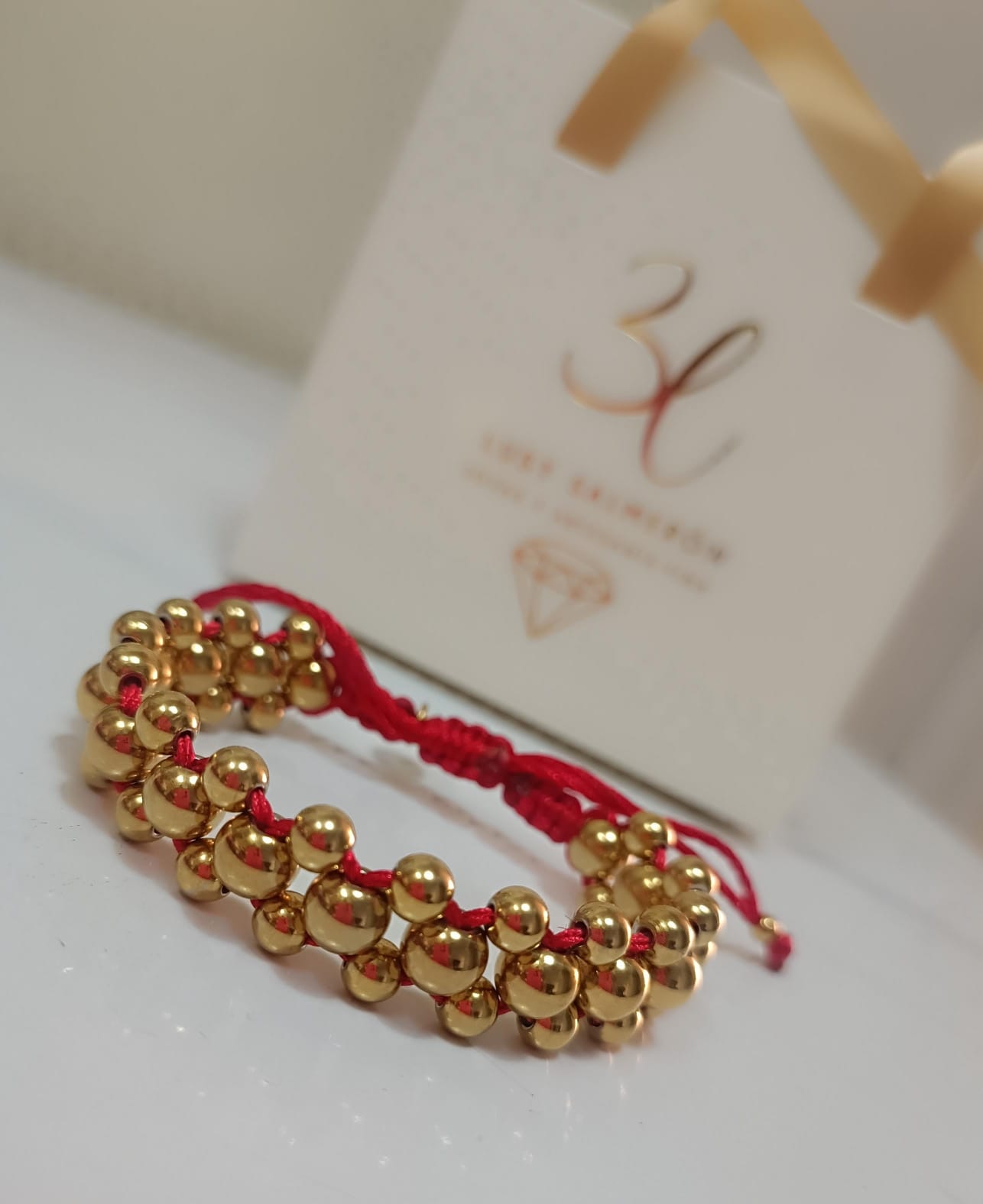 Pulsera unisex tejida y con balines laminados en oro 18k